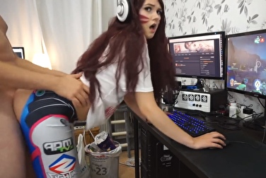 Трейсер из Овервотч сосет и глотает на вебку (+фото)